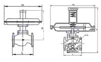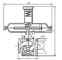 該閥采用大膜片執(zhí)行機(jī)構(gòu)輸出力大穩(wěn)定,對(duì)壓力流量微小變化極其敏感,控制精度很高,閥芯采用單座流開(kāi)(高進(jìn)低出)設(shè)計(jì),在閥蓋處(和閥體連接處)安裝有平衡膜片(起到閥前壓力平衡,消除不平衡力)閥后壓力經(jīng)取壓管進(jìn)入薄膜執(zhí)行機(jī)構(gòu),同薄膜執(zhí)行機(jī)構(gòu)調(diào)節(jié)彈簧相比較,壓力達(dá)不到設(shè)定值(調(diào)節(jié)壓縮執(zhí)行機(jī)構(gòu)彈簧)閥后壓力則變大,反之則變小。